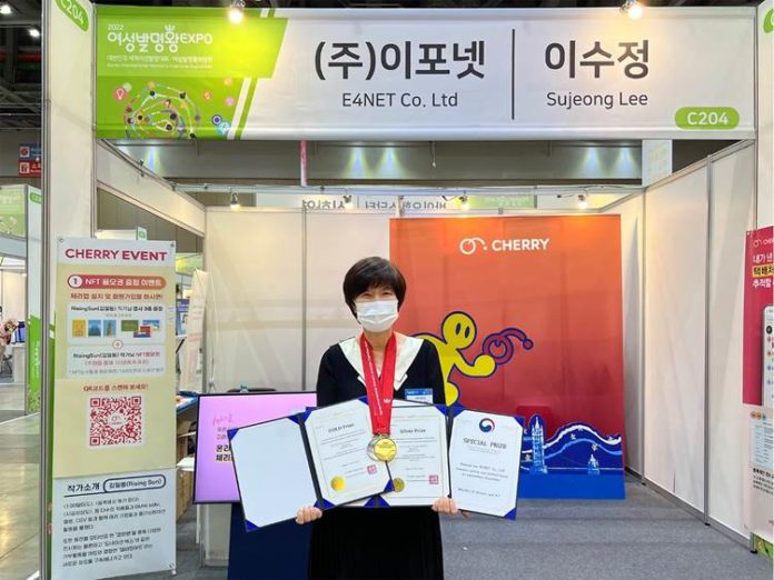 IT 전문 기업 이포넷의 이수정 대표가 지난 27일 킨텍스에서 개최된 제15회 대한민국 세계여성발명대회 시상식에서 블록체인 기반 기부플랫폼 ‘체리’를 발명한 성과를 인정받아 금상과 은상, 특별상인 과학기술정보통신부 장관상을 수상했다.