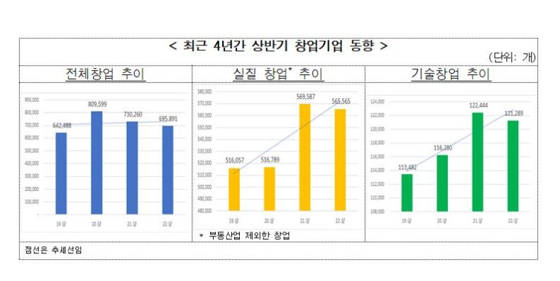 중소벤처기업부(장관 이영)가 발표한 ‘창업기업 동향’에 따르면, ’22년 상반기 전체창업은 69만 5,891개로 나타났다.