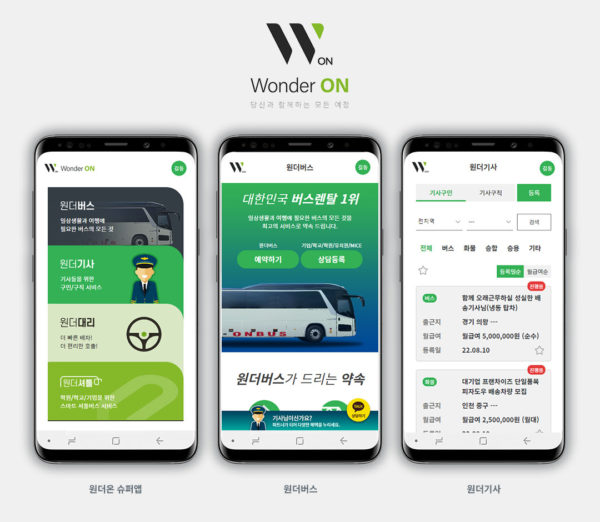 원더온 앱은 구글플레이 및 앱스토어에서 다운로드 가능하며, 모빌리티 슈퍼 앱을 지향하고 있다. 기존 전세버스 플랫폼인 원더버스, 각종 기사 구인/구직 정보를 담고 있는 원더기사, 빠르고 간편하게 대리운전을 호출할 수 있는 원더대리, 기업, 학원, 학교 등의 셔틀버스 위치를 빠르게 확인하고 탑승할 수 있는 원더셔틀 등 모빌리티 운영을 위한 모든 서비스를 모아서 원스탑으로 제공하는 한국 내 유일한 슈퍼 앱이다.