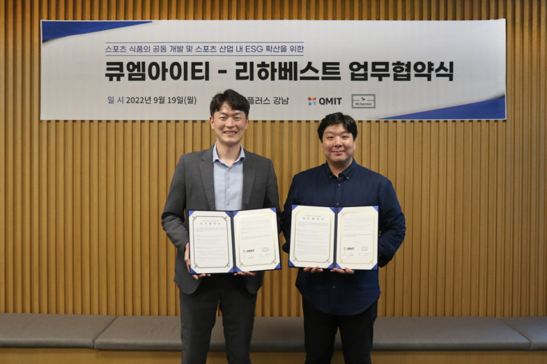 스포츠테크 스타트업 큐엠아이티는 푸드 업사이클링 스타트업 리하베스트와 스포츠 기능식품 개발을 위한 업무협약을 체결했다고 22일 밝혔다.
