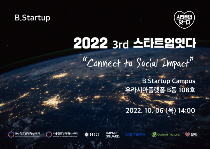 스타트업 잇다는 현장참여와 온라인 생중계로 진행될 예정이며, 스타트업 종사자 및 소셜 임팩트 기업 운영 및 투자 유치에 관심이 있는 누구나 참여가 가능하다. 참가 신청 및 상세 행사 내용은 서울 및 부산센터 공식 SNS 및 홈페이지를 통해서 확인할 수 있다.