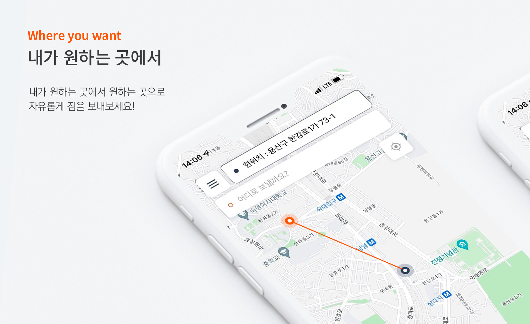 “내가 원하는 곳으로 내 짐을 편리하게 보낼 수 있습니다. 여행에 필요한 모든 것을 원하는 시간에 간편하게 배송하세요.”
