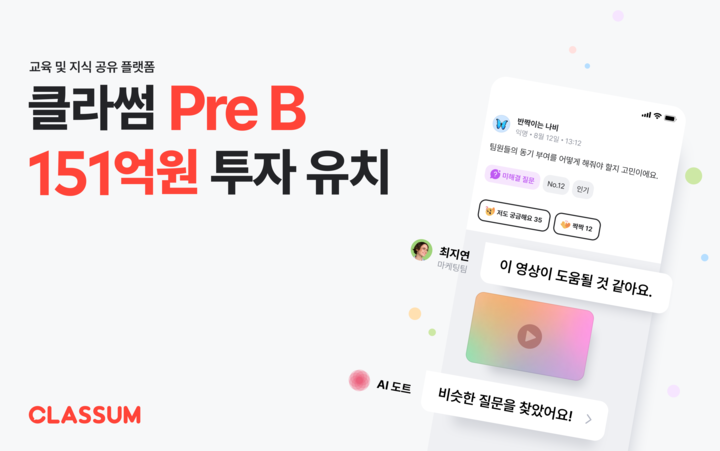 클라썸 이채린 대표는 “기술과 지식의 주기가 짧아지는 시대에 기존의 지식 전달 위주의 교육 방식이 한계를 보이며 새로운 플랫폼에 대한 수요가 급격히 증가했다”며 “소통 중심 교육 플랫폼의 선두주자로서 이번 투자를 바탕으로 공격적인 인재 채용으로 제품을 한층 더 고도화하고, 미국을 중심으로 글로벌 확장을 가속화할 계획”이라고 밝혔다.