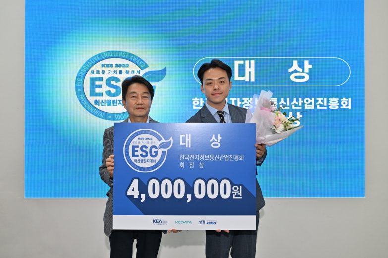올해 처음 열린 ‘ESG 혁신 챌린지 대회’는 한국전자정보통신산업진흥회(KEA) 주최, ESG 전문기관인 삼정KPMG 및 한국평가데이터(KoDATA)의 후원으로 진행됐다.