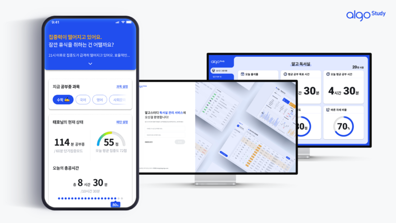 ‘알고스터디’는 센서가 탑재된 스마트 체어를 이용하여, 공부 시간, 자세, 집중도 등을 분석하고, 각 학생의 공부 습관에 따른 맞춤형 코칭을 제공한다. 지난 4월 서비스 런칭 이후 현재 전국 각지의 독서실 및 스터디 카페를 포함한 10여 개 교육기관에서 알고스터디를 도입하여 운영 중이다. 특히, 인테리어만으로 차별화를 만들기 어렵다고 판단한 독서실과 스터디 카페 점주들이 데이터 기반 관리형 시스템에 매우 큰 관심이 있다고 한다. 알고리고는 초기 고객의 피드백을 바탕으로 영업과 마케팅을 강화하여 4분기 본격적으로 시장 확대를 계획하고 있다.
