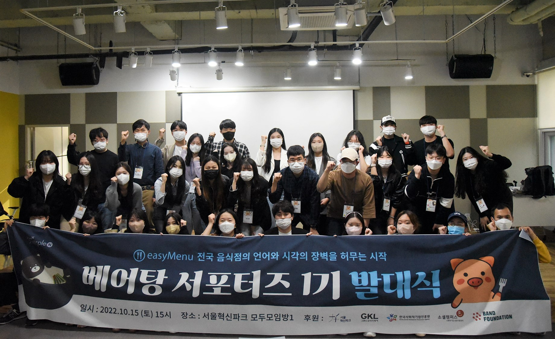 소셜벤처기업 트리플앤의 다국어메뉴판 서비스 이지메뉴의 시범운영에 참여할 ‘베어탕 서포터즈 발대식’이 15일 오후 3시 서울혁신파크 미래청 2층 모두모임방1에서 열렸다.