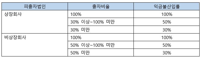 한편 회사는 법인세법의 규정에 따라 자회사로부터 수취하는 배당금에 다음과 같이 일정 비율을 곱한 금액에서 차입금 이자를 차감한 금액만큼을 익금불산입으로 세무조정할 수 있다.