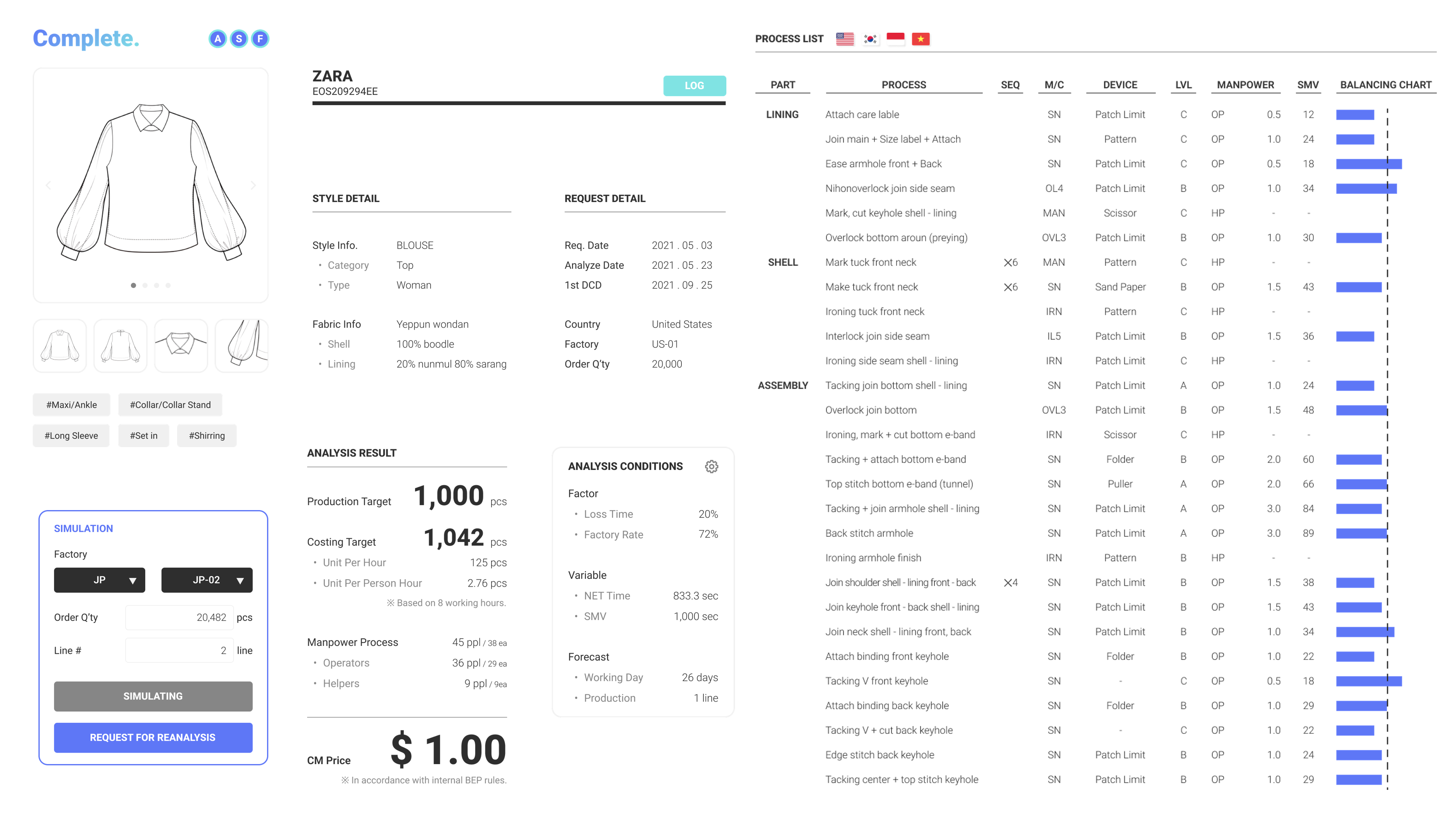 특히 모노리스의 엔진이라 불리우는 공정분석 기술은 신속하고 정확한 소싱 업무를 가능하게 만들어 옷 한 벌 만드는데 1년이 걸리던 전통적인 소싱 리드타임을 단 6개월로 단축시킬 수 있는 핵심 기술이다.