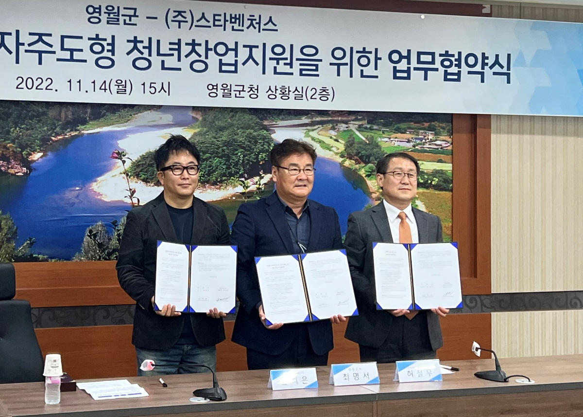 ‘스타벤처스’가 영월군, 호서대학교 서울창업보육센터와 ‘영월형 민간투자주도 창업기업 지원협약’을 체결했다.