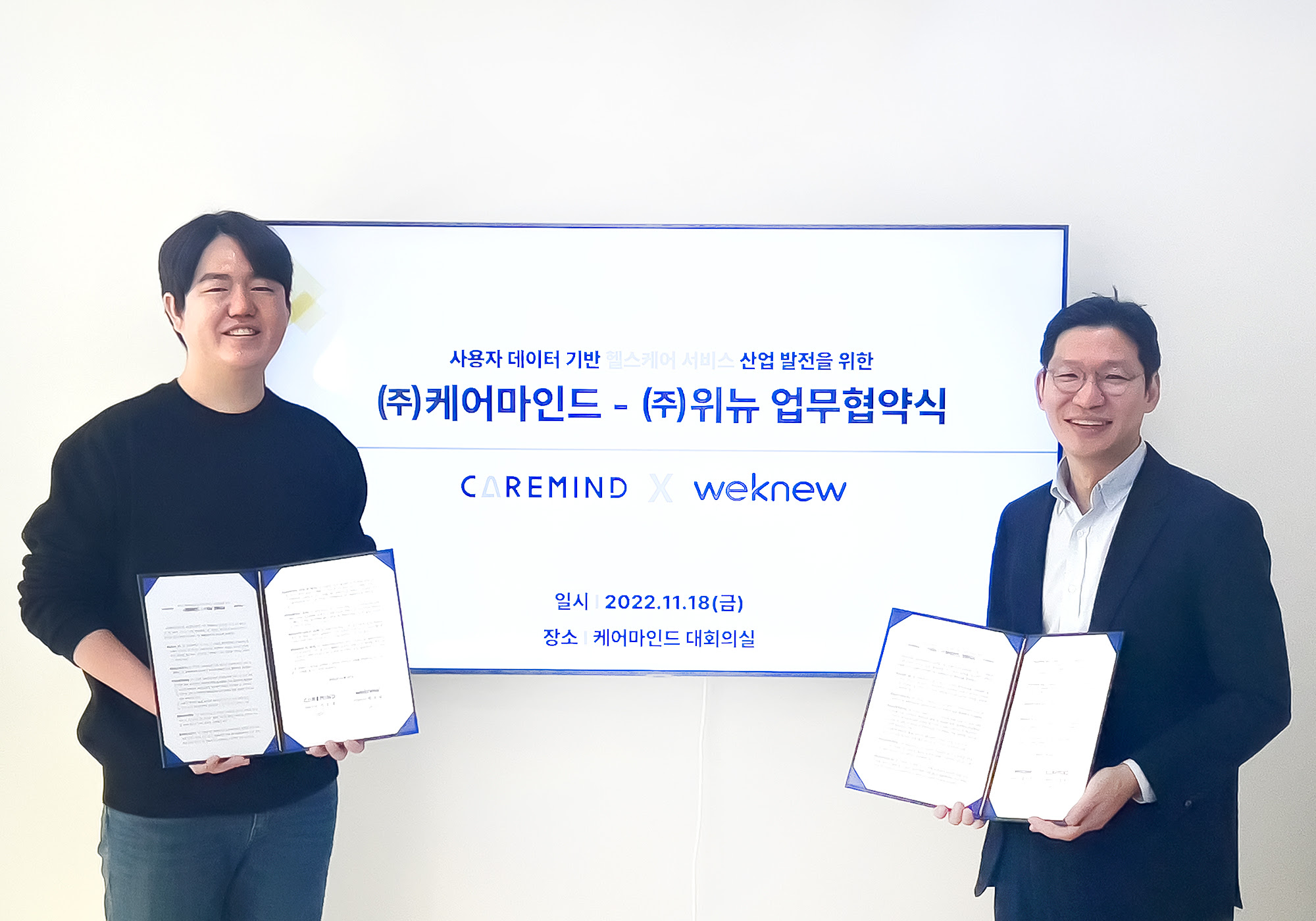 케어마인드가 위뉴와 ‘사용자 데이터 기반 헬스케어 서비스 산업 발전’을 위해 협업을 약속했다.