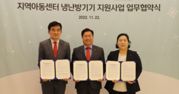 사회복지공동모금회 사랑의열매와 신한금융그룹 및 온프렌즈 전국지역아동센터협의회가 폭염과 한파로 매년 반복되는 지역아동센터의 냉난방기 이용 부담을 낮추기 위해 ‘지역아동센터 냉난방기 지원사업’ 추진을 위한 MOU를 체결했다. 해당 MOU를 바탕으로 신한금융그룹은 3년간 총 9억 원을 지원하며, 지역아동센터 369여 개소의 노후화된 냉난방기를 고효율(1등급) 가전으로 교체해 줄 계획이다. 또한 신형 인버터 고효율 가전으로 교체해 전기료를 절약하고, 센터 이용 아동들이 적정한 온도에서 건강하게 생활할 수 있도록 지원할 방침이다. 이날 협약식에 참석한 신한금융그룹 안준식 브랜드홍보부문장은 “우리 지역사회의 아이들이 겨울에는 한파로, 여름에는 폭염으로 힘든 계절을 보내지 않기를 바란다”며 “신한금융그룹은 아이들의 밝은 미래를 위해서 적극적으로 노력하며 기업의 사회적 책임을 다하기 위해 노력하겠다”고 말했다. 사랑의열매 황인식 사무총장은 “전기료 걱정에 냉난방을 제대로 이용하지 못하는 이웃들이 많다. 생존이 걸려있는 만큼 우리 모두의 관심이 절실히 필요하다”며 “자라나는 어린이들이 건강하게 성장할 수 있도록 사랑의열매도 최선을 다하겠다”고 말했다. 관련 기사 더보기 [embed]https://www.venturesquare.net/797669[/embed]