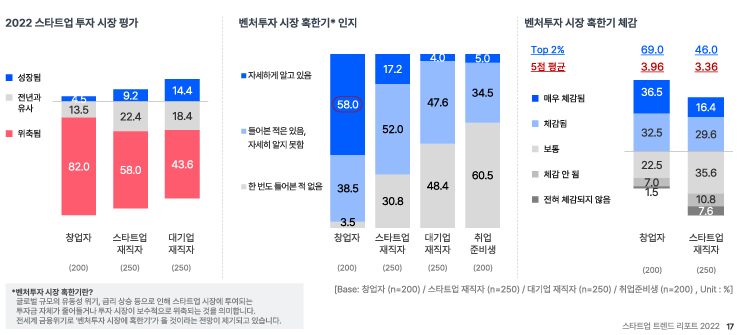 최항집 스타트업얼라이언스 센터장은 “글로벌 경제위기와 벤처투자 혹한기를 체감하는 스타트업들이 늘어나고 있다는 것을 이번 트렌드리포트를 통해 알 수 있었다. 창업자들은 어려운 상황을 극복하기 위해 비용을 절감하고 수익모델을 손보는 등 다양한 노력을 하고 있다”고 말했다.