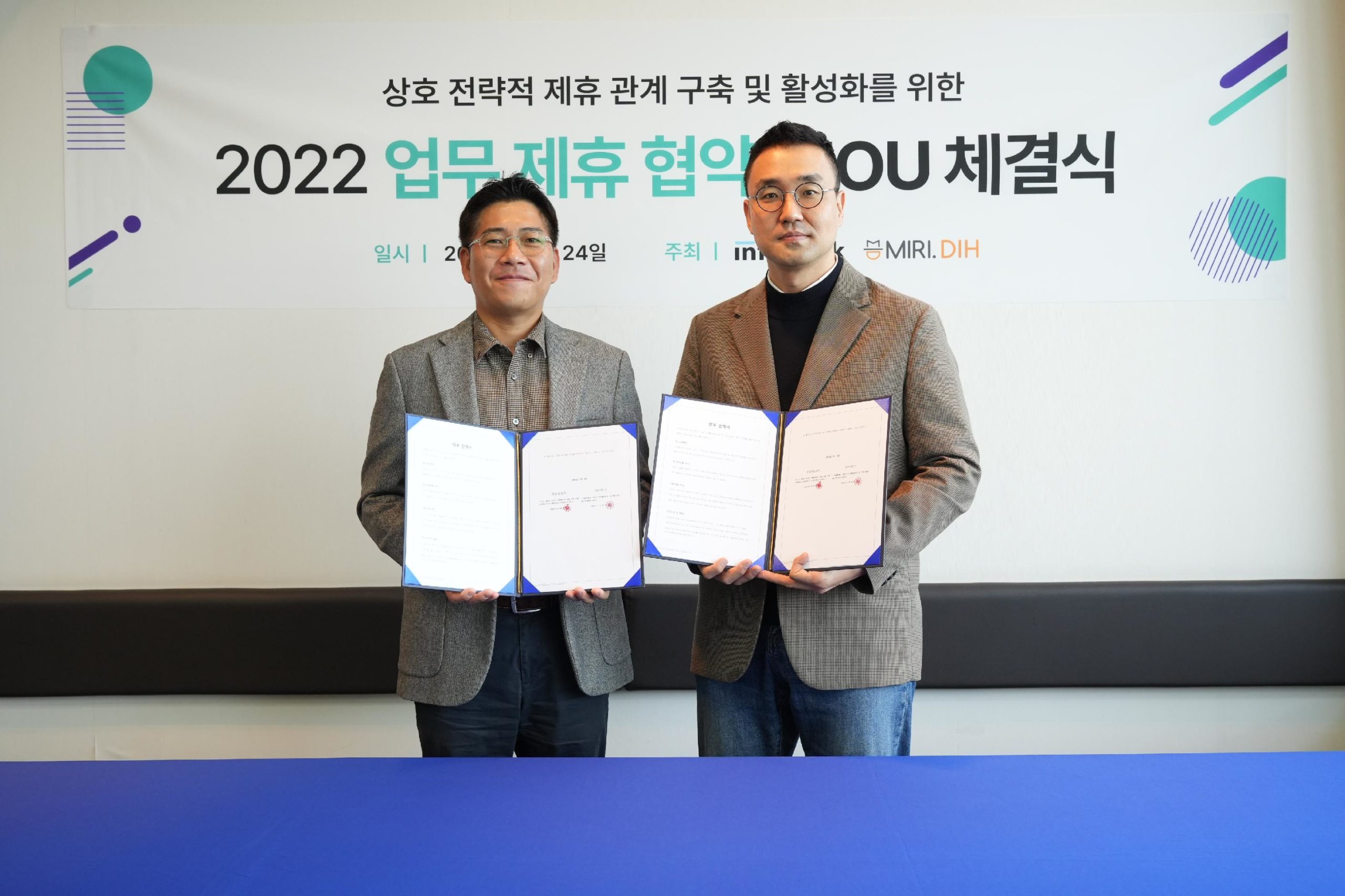 인포뱅크의 기업메시징 전문 사업부 아이메시지가 ‘미리캔버스’ 운영사 미리디와 24일 MOU를 맺었다.