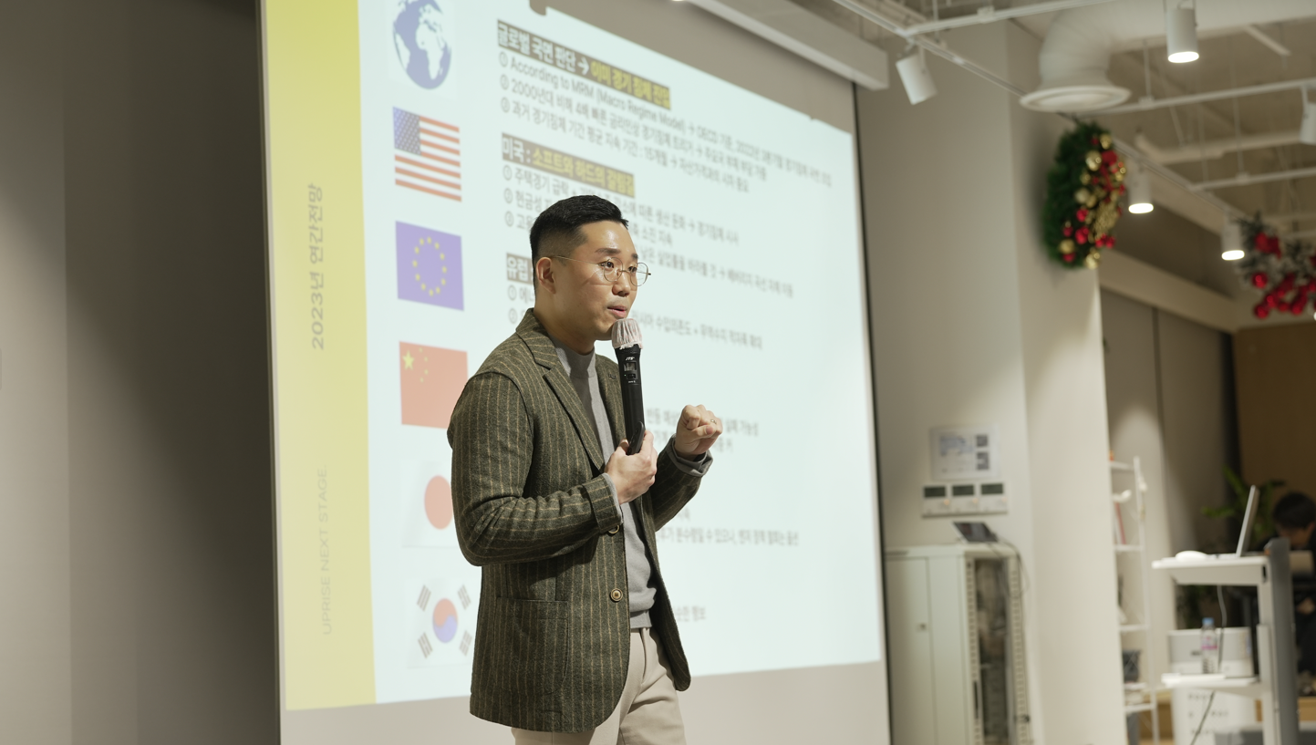 첫번째 연사로 나선 업라이즈 MFO 총괄 김두언(빈센트) 이코노미스트는 ‘2023년 자산시장 전망 : Upside Risk’ 라는 주제로 “글로벌 경기는 이미 경기침체기에 진입했다”고 평가하며 “전세계적으로 약한 고리들에서 부채 우려가 확대될 것을 대비해야 한다. 갑작스러운 통화정책 변화와 자산가격의 업사이드 리스크를 대비할 필요가 있다”고 말했다.