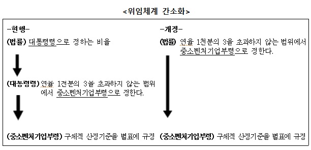 이번 개정으로 다른 보증기관과 같이 출연요율 상한을 근거 법률에 규정함으로써 기존의 법률 → 대통령령 → 부령으로 위임됐던 것에서 법률 → 부령으로 그 위임체계를 간소화하게 됐다.
