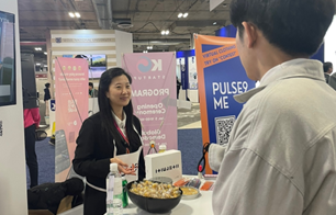 <CES 2023 부스 현장에서 서비스를 설명중인 펄스나인 박지은 대표>