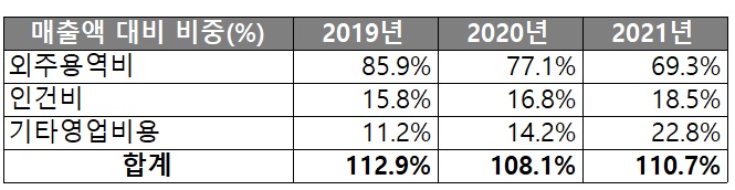 2) 인건비: 2020년말 유치된 투자금을 통해 샌드박스네트워크는 우수인력을 선제적으로 유치하였습니다. 이에 따라 인건비의 지출액 및 비중이 2021년에 크게 증가하였습니다.