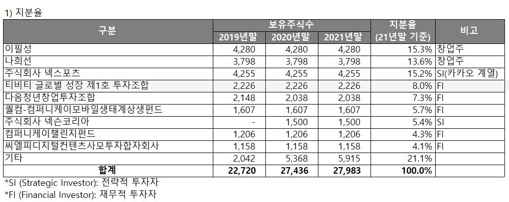 3) 기타영업비용: 2020년말 유치된 투자금을 통해 컨텐츠, 굿즈 판매 등 여러 사업 확장 시도가 있었으며, 이에 따라 지급수수료, 제작비 등의 기타영업비용 지출액 및 비중이 2021년에 크게 증가하였습니다.