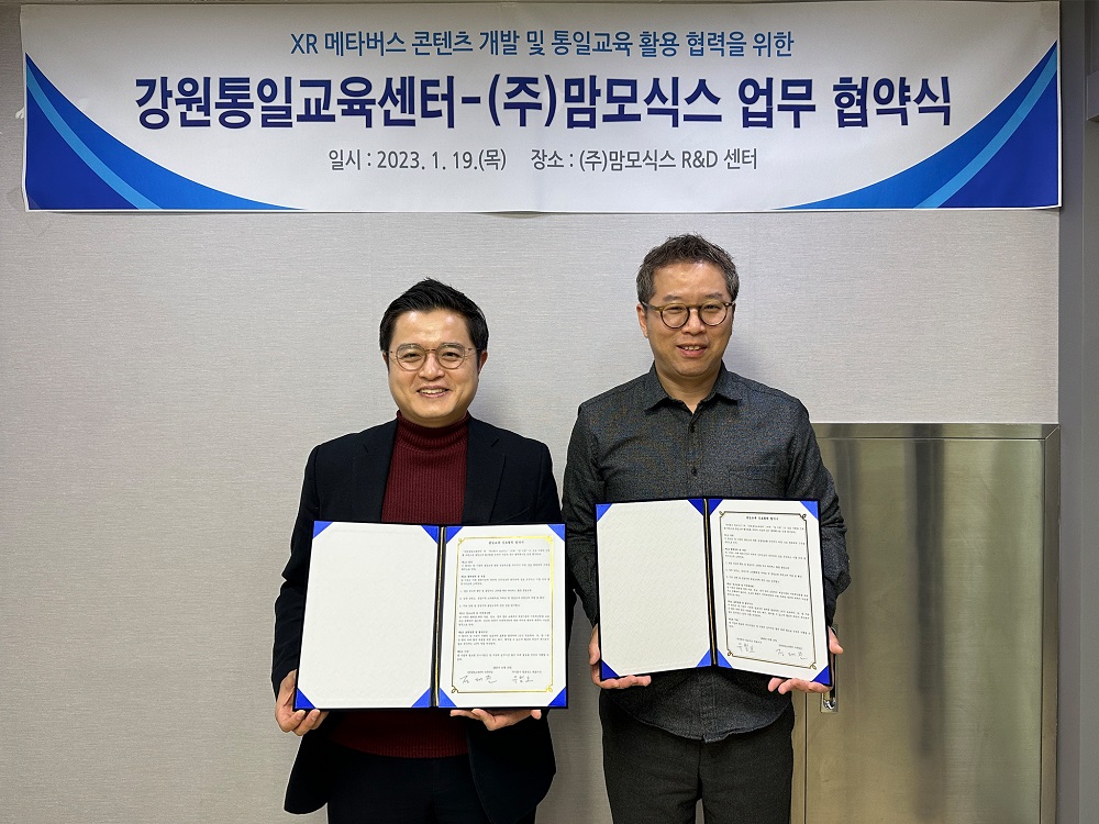 넵튠의 자회사인 XR 메타버스 플랫폼 개발사 맘모식스가 원주 한라대학교에서 운영하는 강원통일교육센터와 메타버스 활용 업무 제휴를 체결했다.