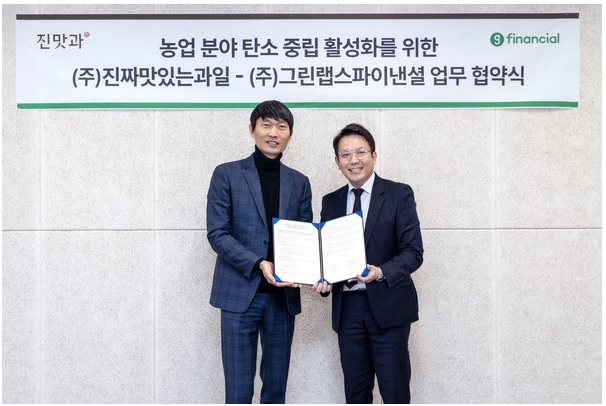 지난 2일 그린랩스파이낸셜과 프리미엄 과일 온라인 유통 업체 (주)진짜맛있는과일(이하 진맛과)‘이 저탄소과일 생산·유통 확대를 위한 양해각서를 체결했다.
