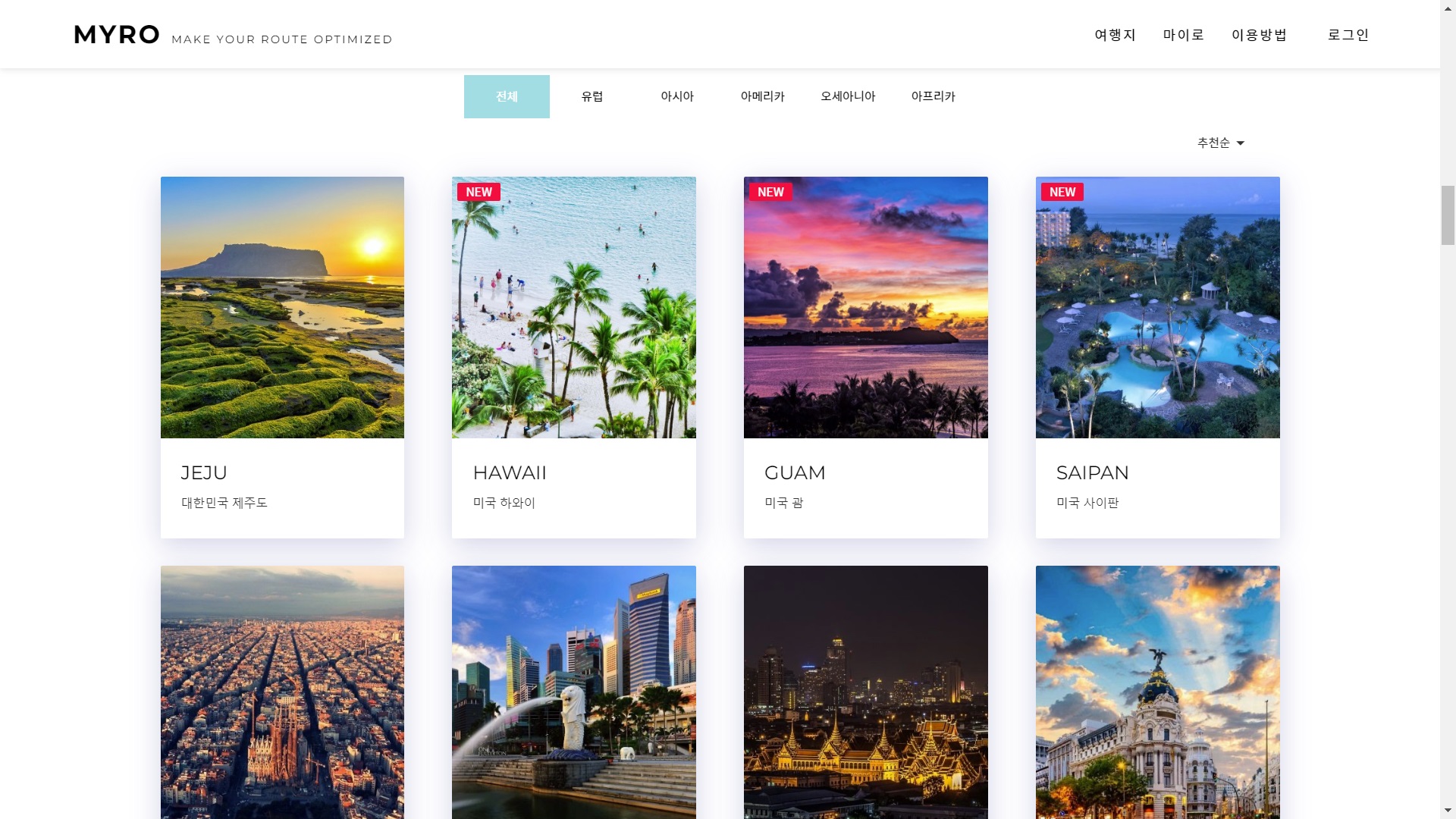 엠와이알오(MYRO)가 AI가 나에게 꼭 맞춘 여행 플랜을 짜주는 서비스 ‘마이로’를 선보였다. 쇼핑할 때 장바구니에 물건을 담듯 방문하고 싶은 여행지 명소를 선택하면 일정은 AI가 짜주는 편리한 서비스다.