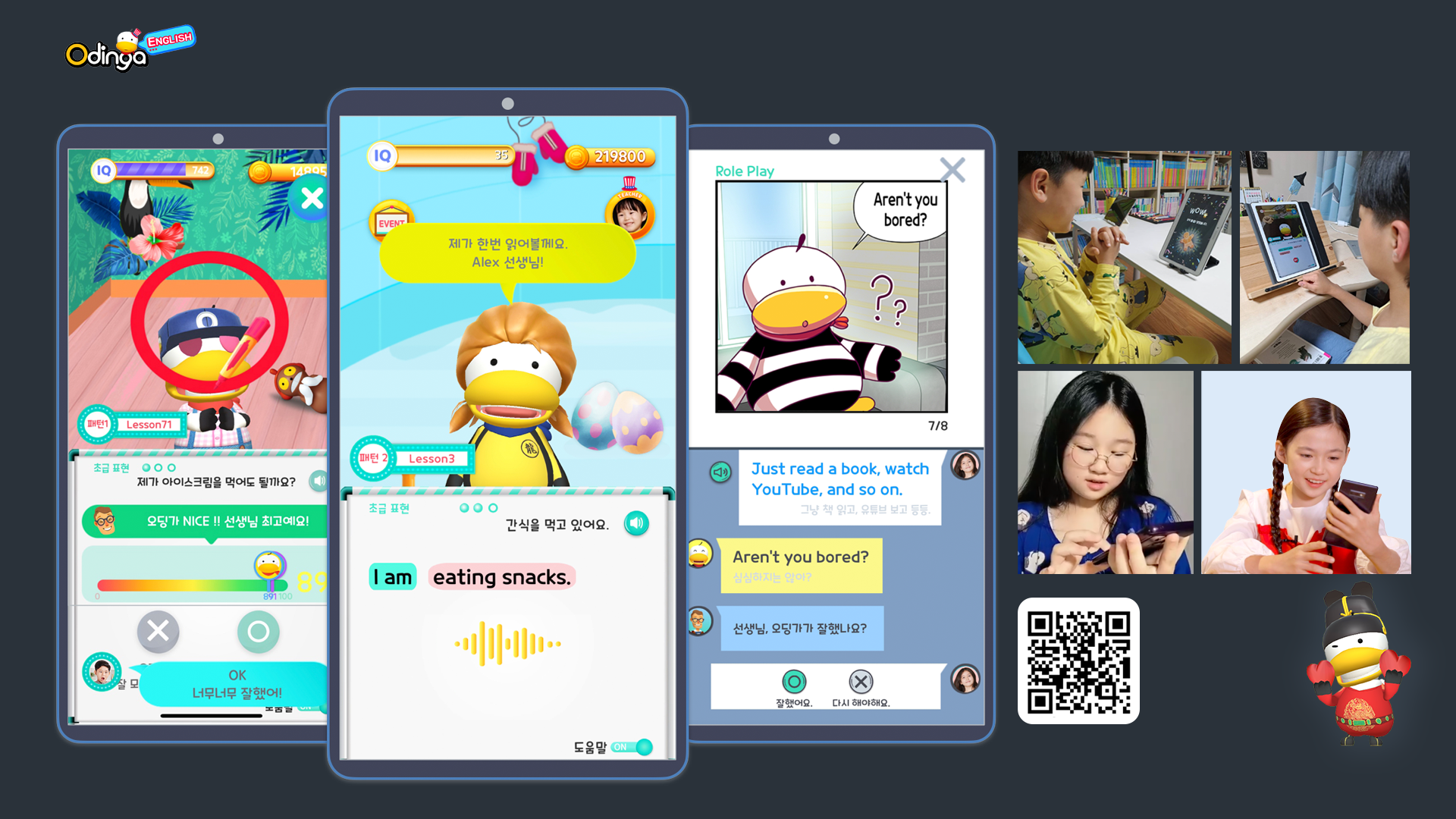이 대표는 “특히 팬데믹 환경에서 영어 말하기 상대 없이 학습에 소요되는 비용 때문에 부모의 경제력이 아이들의 영어 실력이 되는 문제를 해결하고 싶었다”며 “영어가 공부를 위한 ‘과목’이 아닌 의사소통을 위한 ‘언어’로 인식하고 언제든지 1:1 영어 말하기를 연습할 수 있는 게 오딩가 잉글리시”라고 설명했다.