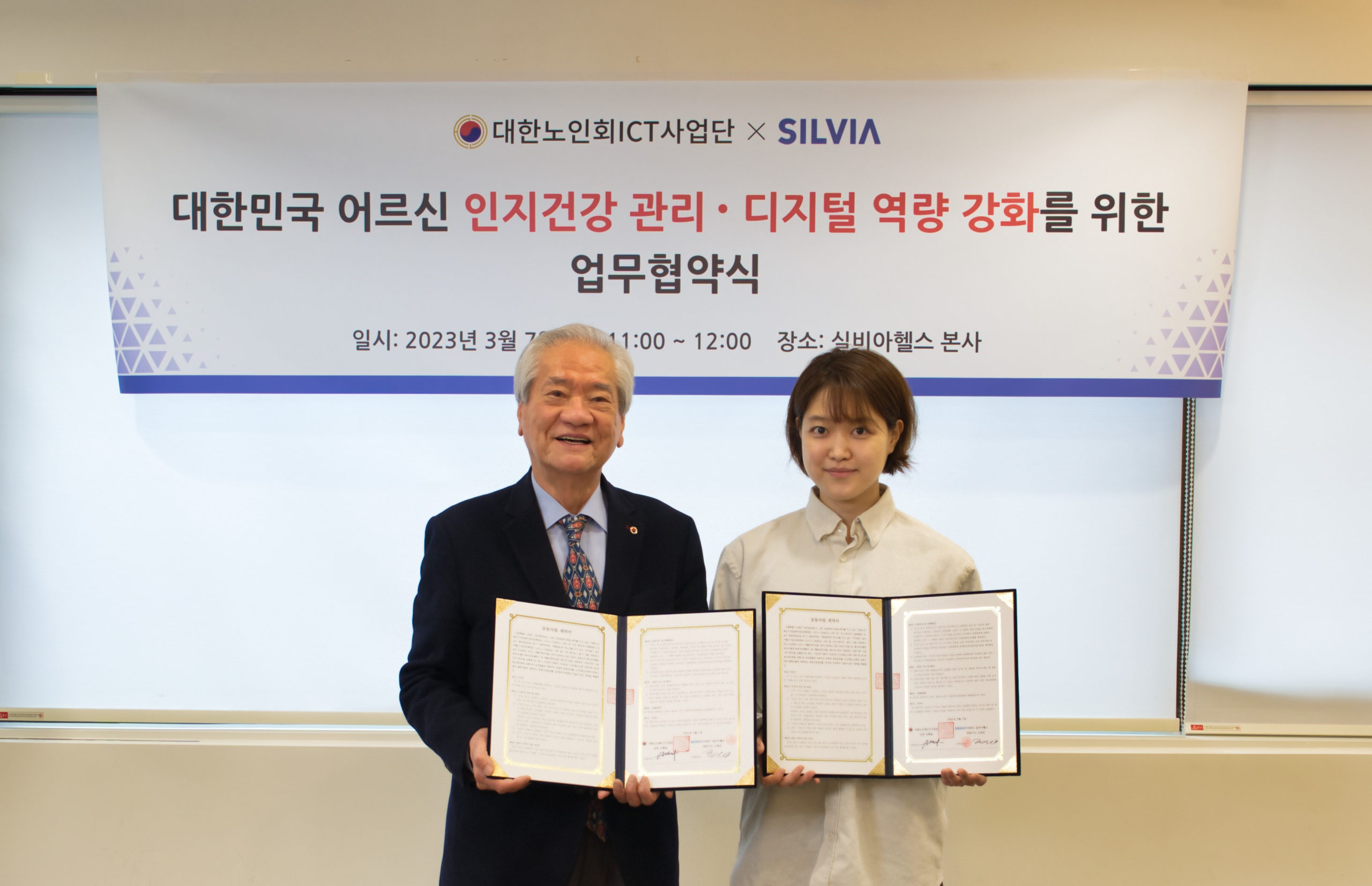 대한노인회 ICT사업단이 지난 7일 인지 건강 전문 기업 실비아헬스와 대한민국 어르신 인지건강 관리 및 디지털 역량 강화를 위한 업무협약(MOU)을 체결했다.