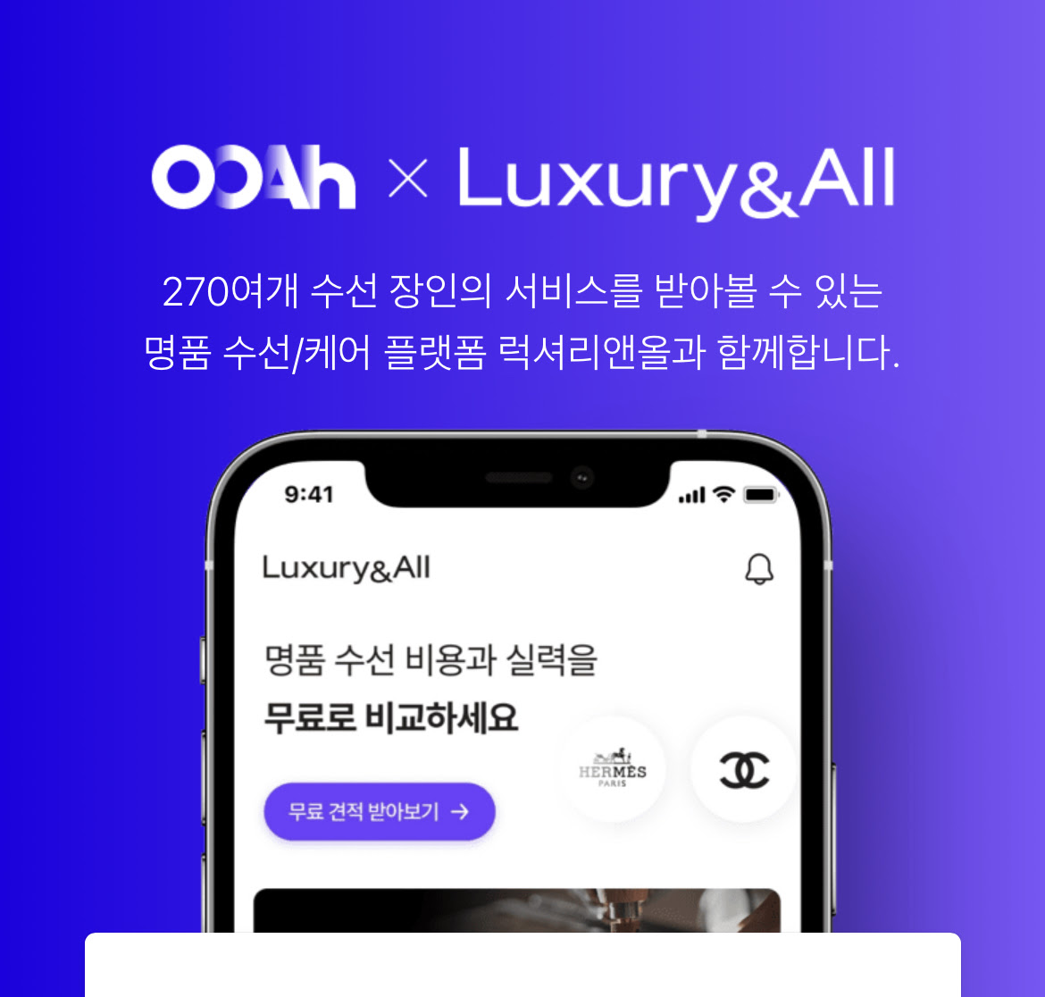 모바일 명품 수선/케어 플랫폼 럭셔리앤올이 11번가의 명품 전문관 ‘우아럭스’ 내 명품 사후케어 서비스를 선보인다.