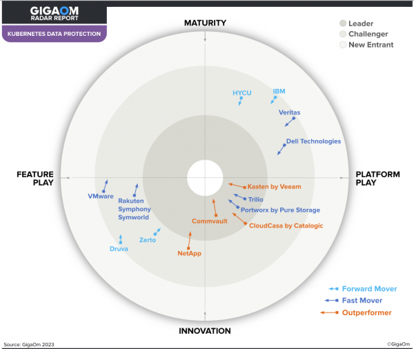 빔 소프트웨어의 카스텐(Kasten) K10 플랫폼은 해당 보고서에서 유일하게 5개 평가 지표(유연성, 확장성, 성능, 편의성, 보안성) 모두에서 최고 평가인 ‘특출한(Exceptional)’ 등급을 받았다. 카스텐 K10 플랫폼은 컨테이너 기반 애플리케이션을 위한 백업, 복원, 재해 복구 및 모빌리티 기능을 제공하는 쿠버네티스 전용 플랫폼이다. 기가옴은 카스텐 K10에 대해 클라우드 및 IT 관리자와 개발자가 다양한 엔터프라이즈 환경에서 사용 가능한 고급 기능을 잘 갖춘 솔루션이라고 평가했다.