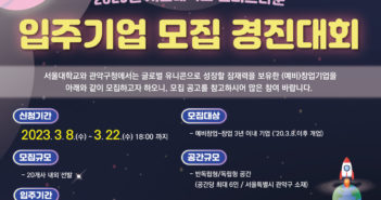 서울대학교와 관악구청이 ‘2023년 서울대학교 캠퍼스타운 입주기업 모집 경진대회’를 진행한다. 이번 모집은 예비창업 ~창업 3년 이내 기업(2020년 3월 8일 이후 개업)을 대상으로 진행된다. 서울대학교 캠퍼스타운 사업단은 2020년 6월 입주기업 선발 경진대회를 시작으로 글로벌 시장에 진출 가능성 있는 스타트업 기업을 선발하고 있다. 현재까지 73개 스타트업들을 발굴했고, 입주기업들은 현재까지 누적 매출액 174억원, 투자유치 953억원, 지원사업선정 156억원, 지식재산권 515건 등 괄목할 만한 성과를 도출하고 있다. 금번 모집 대상은 향후 글로벌 유니콘 기업으로의 성장 가능성을 보유한 (예비)창업팀 또는 창업 3년 이내 기업으로 선정 규모는 총 20팀 내외다. 모집기간은 이달 22일까지이며. AI, 빅데이터, 로봇, 핀테크, 블록체인, 바이오테크 등 혁신기술 관련 아이템을 우대한다. 입주기업은 서울특별시 관악구 소재 ‘창업 HERE-RO’ 2~5호 거점센터에 입주해 ▲창업공간 무상 제공 ▲서울대학교 교수 및 연구진 기술 연계 ▲수요 맞춤형 멘토링/컨설팅 및 네트워킹 지원 ▲데모데이 운영을 통한 투자 유치 지원 및 상시 투자자 연계 지원 ▲사업단 홍보 채널을 통한 입주기업 홍보 등의 혜택을 지원 받을 수 있다. 관련 기사 더보기 https://www.venturesquare.net/875193