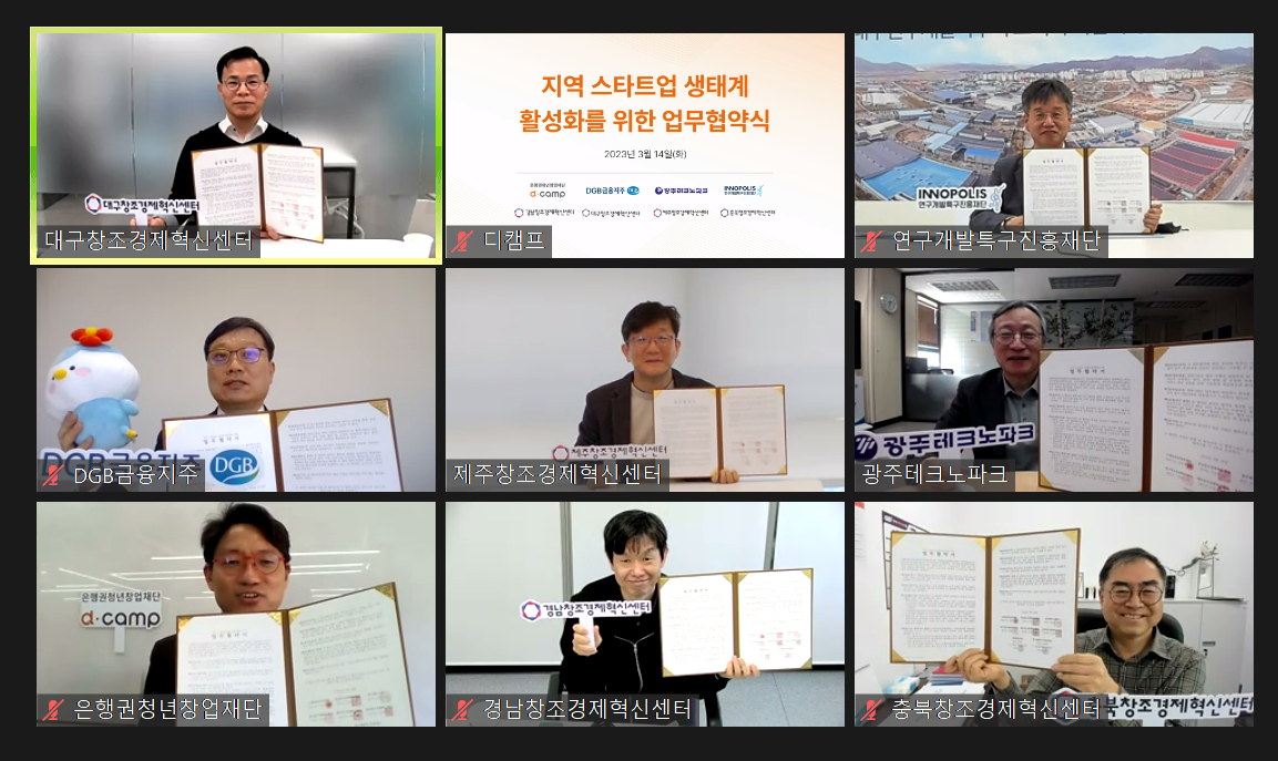 이번 협약에는 경남창조경제혁신센터를 비롯하여 ▲디캠프 ▲DGB금융지주 ▲광주테크노파크 ▲대구창조경제혁신센터 ▲연구개발특구진흥재단 ▲제주창조경제혁신센터 ▲충북창조경제혁신센터가 함께 참여했다.