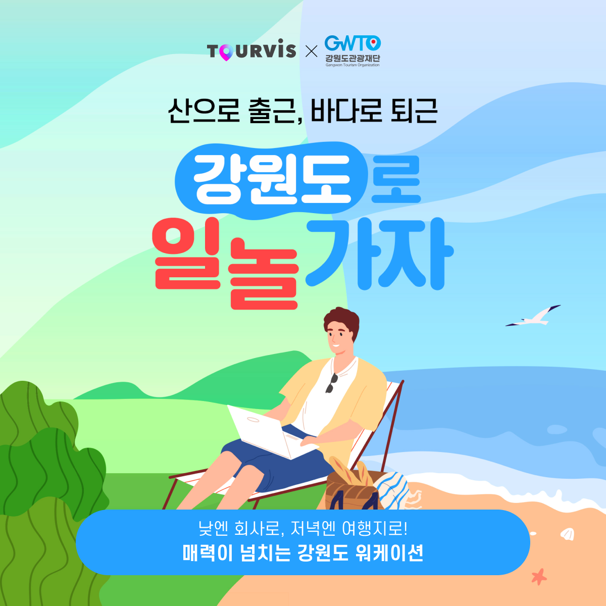 온라인 여행 플랫폼 투어비스가 강원도관광재단과 함께 하는 워케이션 프로모션 ‘일놀 가자’를 2년 연속 진행한다.