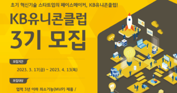 경기창조경제혁신센터(이하 ‘경기혁신센터’)가 다음달 13일까지 ‘2023 K-Champ Challenge KB유니콘클럽 3기(이하 ‘KB유니콘클럽’)’ 참가기업을 모집한다. KB유니콘클럽은 No.1 금융플랫폼 KB국민은행과 글로벌 Top 액셀러레이터 경기혁신센터가 상호 협업하여 3년 이하 혁신기술 기반 스타트업을 대상으로 전주기 맞춤형 액셀러레이팅 및 직접투자(SEED)까지 실행하는 경기혁신센터만의 초기 스타트업 성장 플랫폼이다. 올해 KB유니콘클럽 3기는 4차 산업혁명 기술창업 전 분야 최소기능(MVP)을 보유한 기술 스타트업(3년 이내)을 대상으로 한다. 팁스(TIPS)에 선정되지 않으면서 경기혁신센터로부터 초기 투자를 희망하는 스타트업 총 10개사를 선정할 예정이다. 최종 선정기업은 ▲판교테크노밸리 내 워킹스페이스 무상 지원 ▲정기 IR연계 및 스타트업-투자자 간 네트워크 구축 ▲스타트업 맞춤형 Customized 액셀러레이팅▲글로벌 진출 지원 ▲오픈이노베이션 사업화 연계 등을 지원받게 된다. 특히 경기혁신센터는 올해 KB유니콘클럽 3기 우수 스타트업에 한해 직접투자(SEED)를 진행하고, 팁스(TIPS) 우선 추천권 부여및 스타트업 815 투자 IR 연계등 선정기업 대상 후속지원도 이루어질 계획이다. 관련 기사 더보기 https://www.venturesquare.net/873444