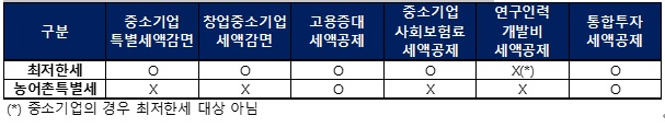 최저한세 및 농어촌특별세 적용 여부를 간단히 정리하면 다음과 같다.