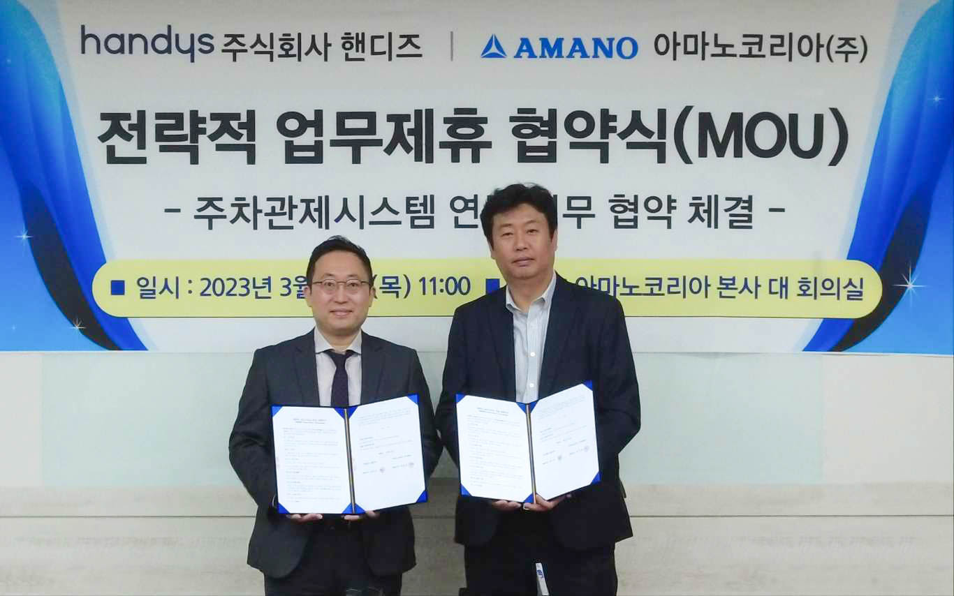 숙박 위탁운영 서비스 1등 스타트업 핸디즈가 아마노코리아와 고객 주차 서비스 제공을 위한 전략적 MOU를 체결했다.