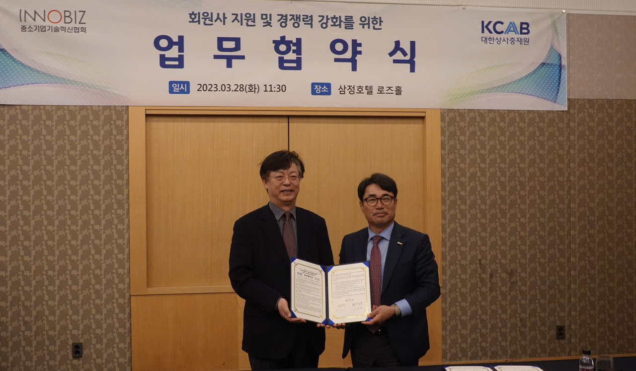 대한상사중재원(이하 ‘중재원’)과 이노비즈협회(이하 ‘협회’)가 28일 삼정호텔 로즈홀에서 업무협약을 맺고 양 기관의 협력 강화를 약속했다.