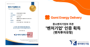 에너지 리테일 플랫폼 기업 고미에너지딜리버리㈜가 우수한 기술성과 미래 성장 가능성을 인정 받아 지난 12일 중소벤처기업부 주관의 ‘벤처투자유형’ 벤처기업인증을 획득했다. 중기부는 ‘벤처기업인증’ 제도를 통해 기술 및 경영혁신 능력이 우수한 중소기업 중 ‘벤처기업육성에 관한 특별조치법’의 요건을 충족하는 기업을 선정해, 자금, 투자, 조세 등 각종 정부 지원 혜택을 제공한다. 고미에너지딜리버리가 획득한 ‘벤처투자유형’은 적격 투자 기관으로부터 기술의 혁신성과 사업의 성장성을 평가 받아 일정 수준의 투자 유치에 성공한 기업에게 발급된다. 고미에너지딜리버리는 전통 에너지는 물론, 각종 친환경 에너지 제품을 공급 받아 전국에 유통하고 있다. 지난해에는 전체 매출 약 290억 원을 달성하며, 2021년 대비 약 400%의 가파른 성장세를 이뤄냈다. 또한, 이러한 추세에 발맞추어 지속적인 투자 유치에도 성공하고 있다. 고미에너지딜리버리 이상곤 대표는 “벤처기업인증을 통해 자사의 우수한 기술력과 성장 가능성을 인정 받았다는 것에 대해 매우 기쁘게 생각한다”며, “앞으로도 지속적인 기술 개발과 혁신을 통해 고객들에게는 만족스러운 서비스를 제공하고, 투자자들에게는 좋은 성과로 보답하고자 한다”며 기대감을 전했다. 한편, 고미에너지딜리버리는 디지털 플랫폼 사업을 시작으로 전기차(EV) 충전기 및 전기 유통과 폐배터리 유통 인프라 구축 등 다양한 신규 사업을 준비 중에 있다.