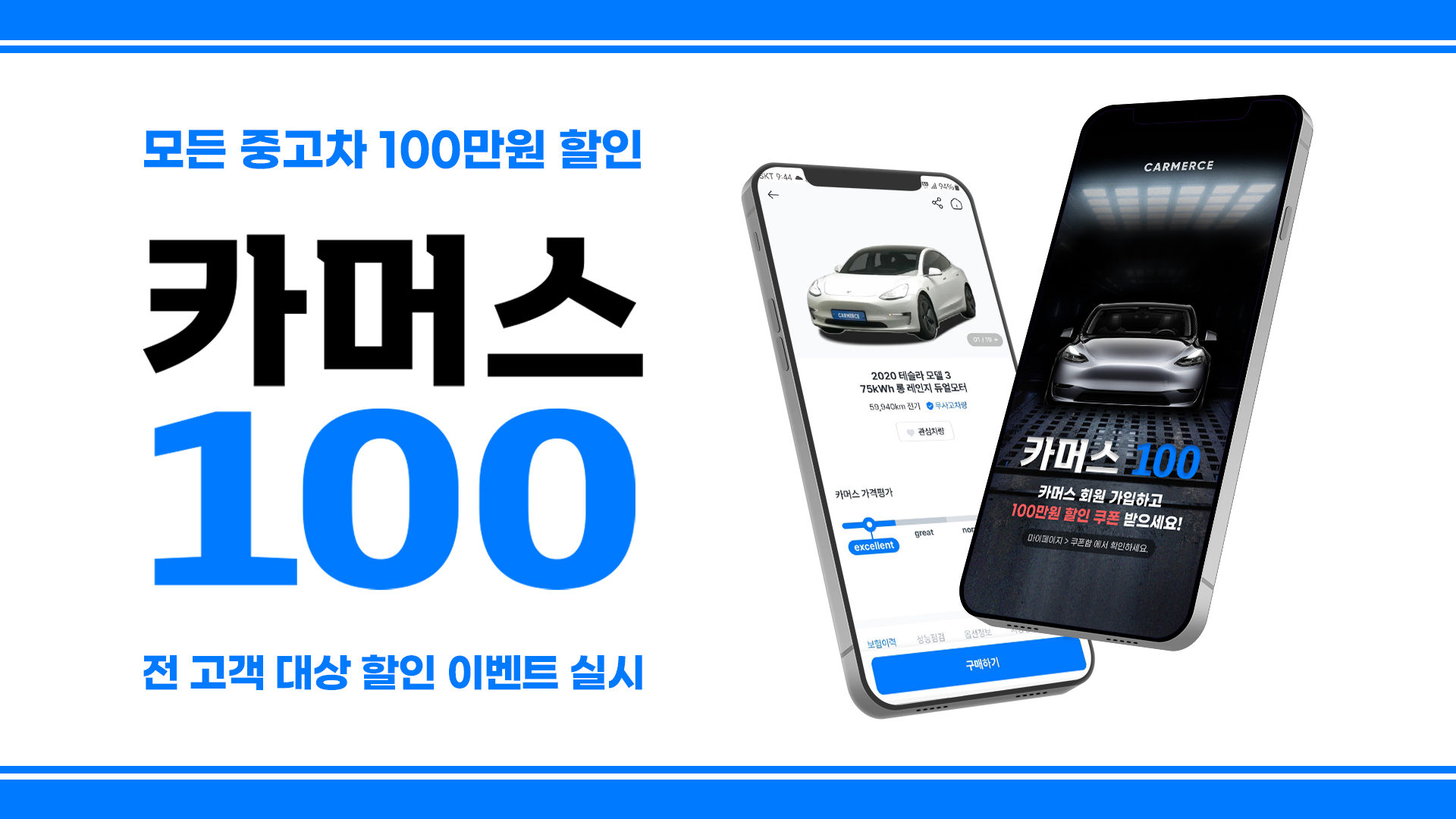 중고차 이커머스 플랫폼 카머스가 런칭을 기념해 모든 가입 고객을 대상으로 최종 차량 구매가에서 100만원 할인 혜택을 제공하는 ‘카머스 100’ 이벤트를 5월 말까지 실시한다.