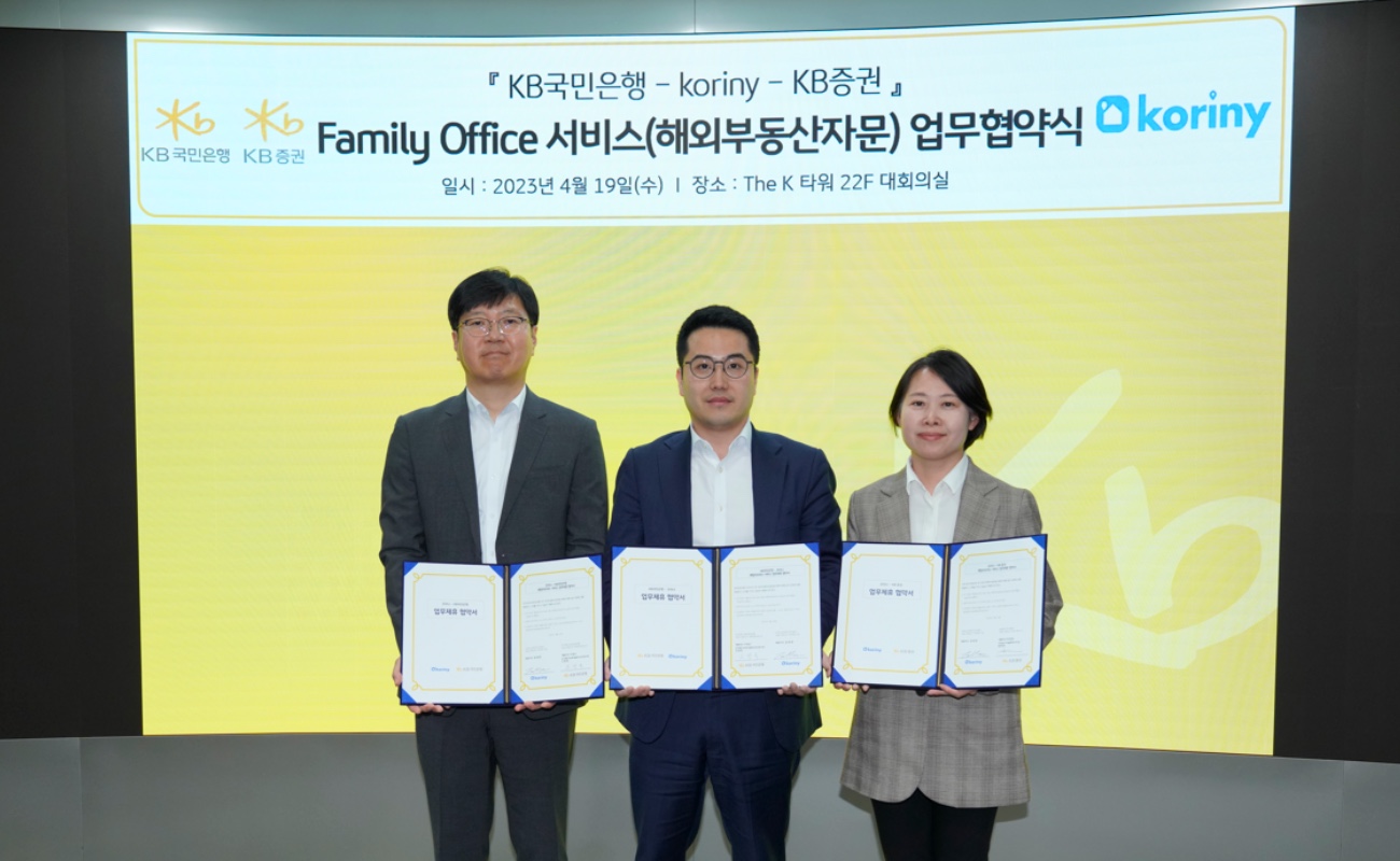 뉴욕 부동산 플랫폼 코리니KB국민은행·KB증권과 패밀리 오피스 서비스 강화를 위한 업무협약(MOU)을 체결했다.