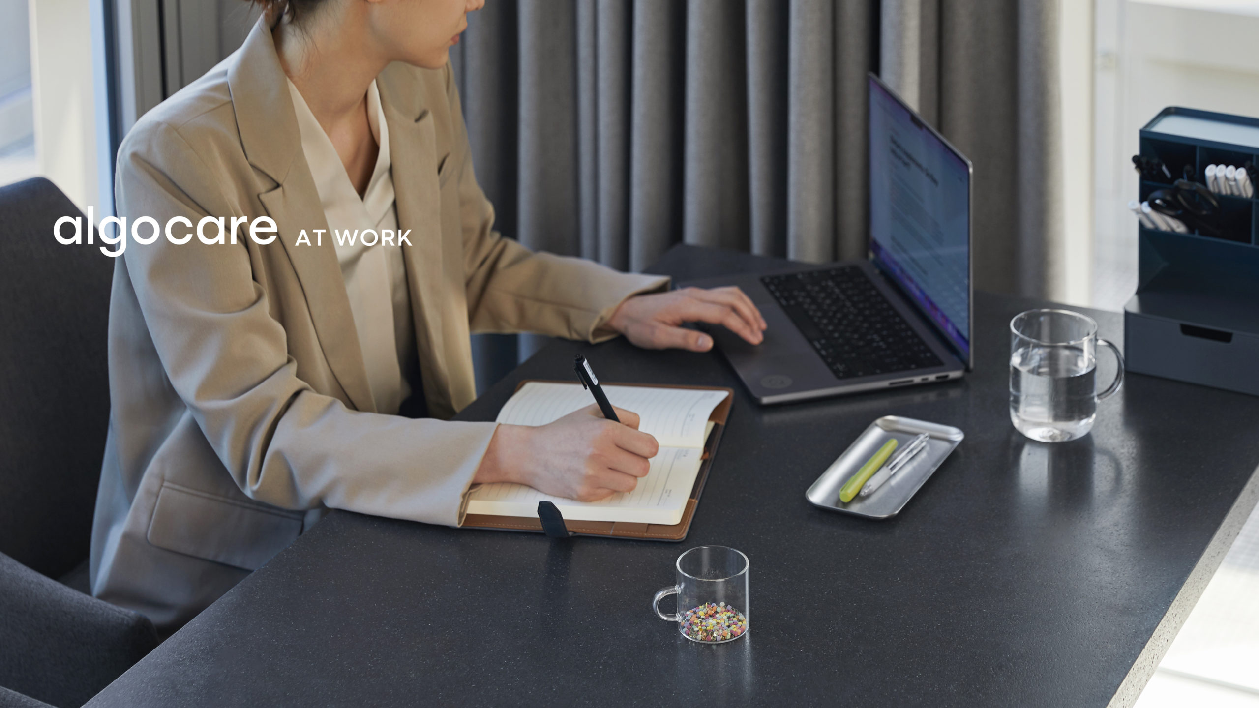 알고케어 앳 워크는 기업을 대상으로 맞춤형 영양관리를 제공하는 서비스다. 알고케어가 개발한 헬스케어 인공지능과 IoT 영양관리 가전을 활용해 사용자의 건강상태를 분석하고 실시간으로 영양제를 조합해준다. 기업은 해당 서비스를 도입해 임직원들에게 영양관리를 복지로 제공할 수 있다. 알고케어 앳 워크를 사용하면 올바른 영양제 복용을 통해 임직원 건강을 챙기고 업무 효율과 근무 만족도를 높일 수 있다.