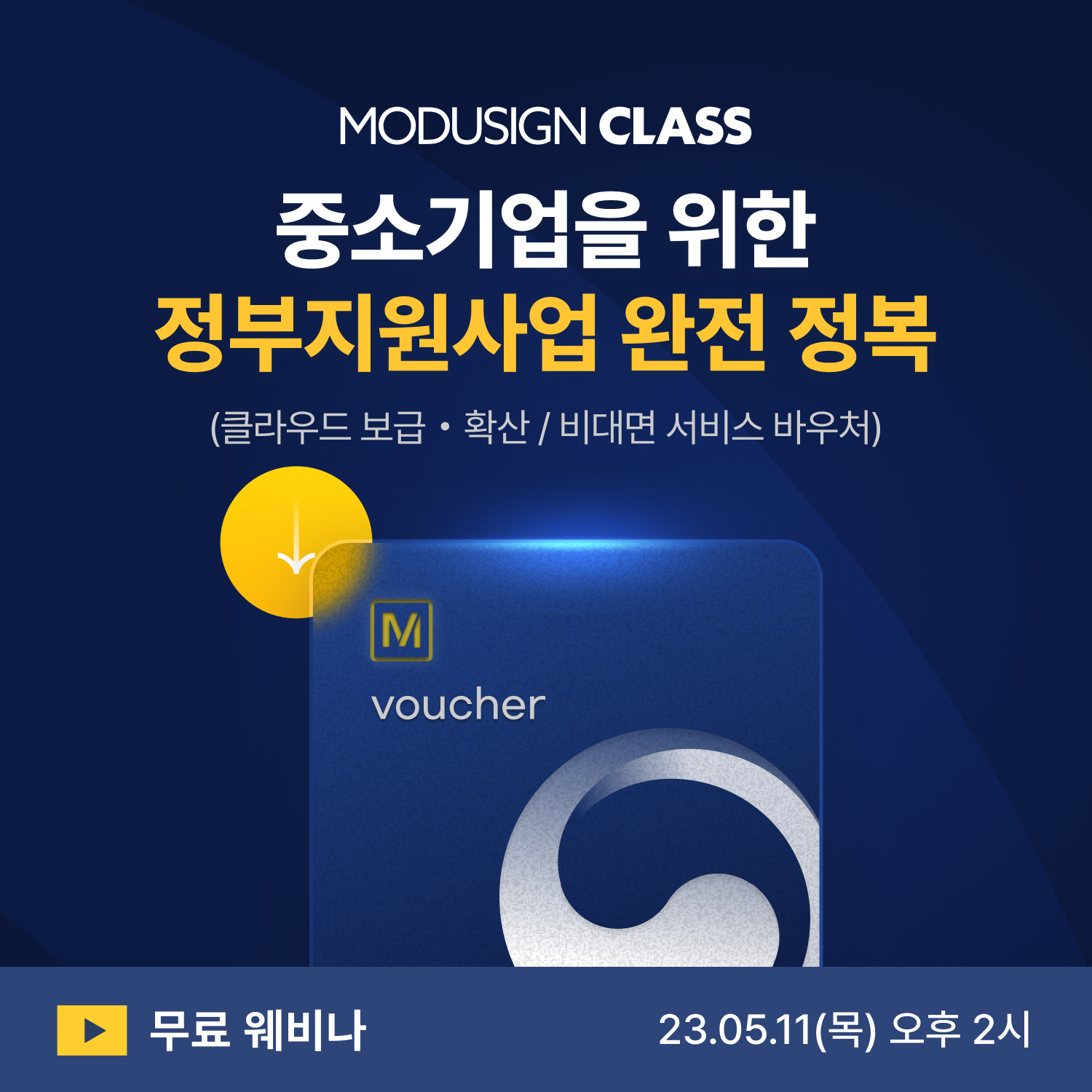 전자계약 전문기업 모두싸인이 ‘2023년 비대면 서비스 바우처 지원사업’ 예비 수요기업들을 위해 오는 5월 11일 ‘정부지원사업 완전 정복’ 무료 웨비나를 진행한다.
