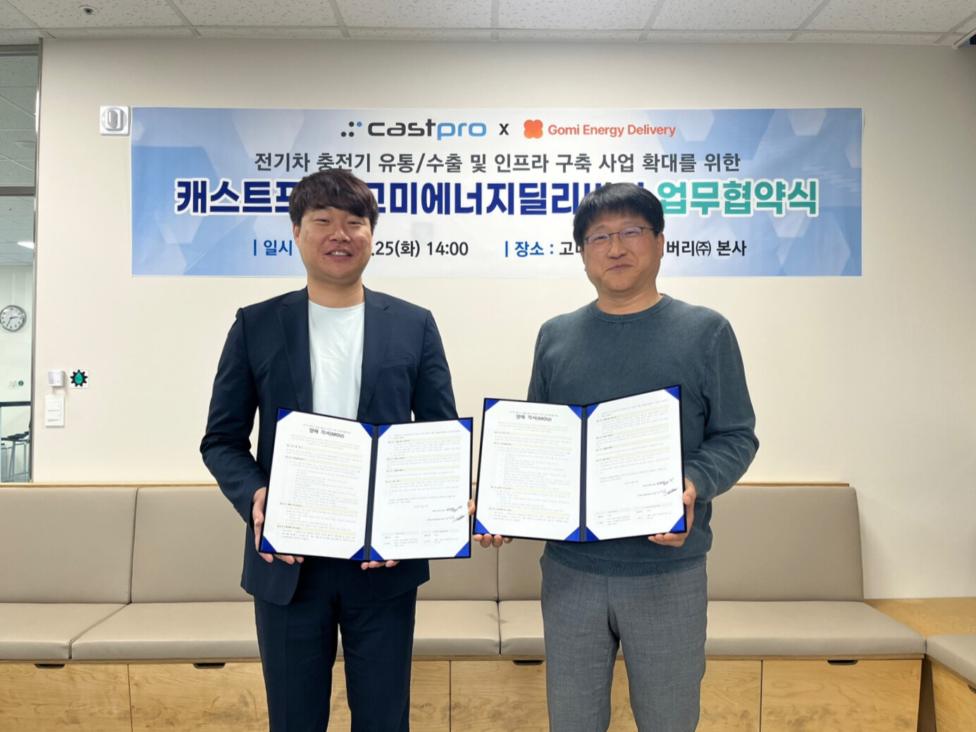 에너지 리테일 플랫폼 기업 고미에너지딜리버리㈜가 전기차 충전기 전문 제조 기업 ㈜캐스트프로와 전기차 충전기 유통 및 인프라 구축 사업을 위한 양해각서(MOU)를 체결했다.