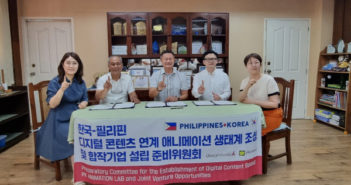 한국콘텐츠진흥원(원장 조현래, 이하 콘진원) 기업육성팀 뉴콘텐츠기업지원센터에 입주한 애니메이션 전문기업 알리몰리스튜디오(대표 허용국)가 디자인스튜디오에이(대표 이상희)와 함께 필리핀 바왕시와 합작법인 설립을 위한 양해각서(MOU)를 체결했다고 18일 밝혔다. 18일 알…