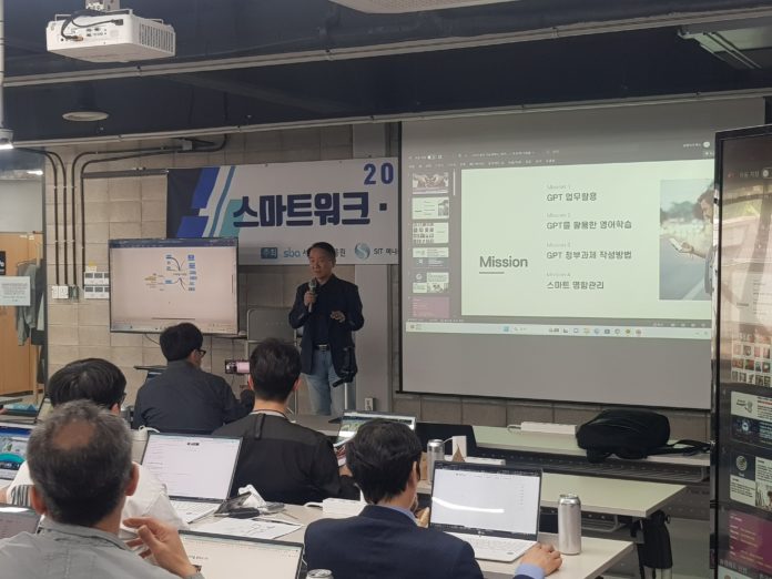 이날 G밸리 네트워킹 행사에는 ‘2023년 스마트워크 IT 기술세미나’가 개최되었으며 본 세미나는 참석한 33개 기업이 스타트업 경쟁력 강화를 위해 협력기관인 SBA의 G밸리활성화팀장(김상용)과 SIT MC회장(차명일)이 직접 교육을 진행하였으며, ChatGPT 프로그램을 통한 인공지능 AI 사용 방법 및 리멤버 애플리케이션을 통한 명함 관리 등에 대한 교육을 진행했다.