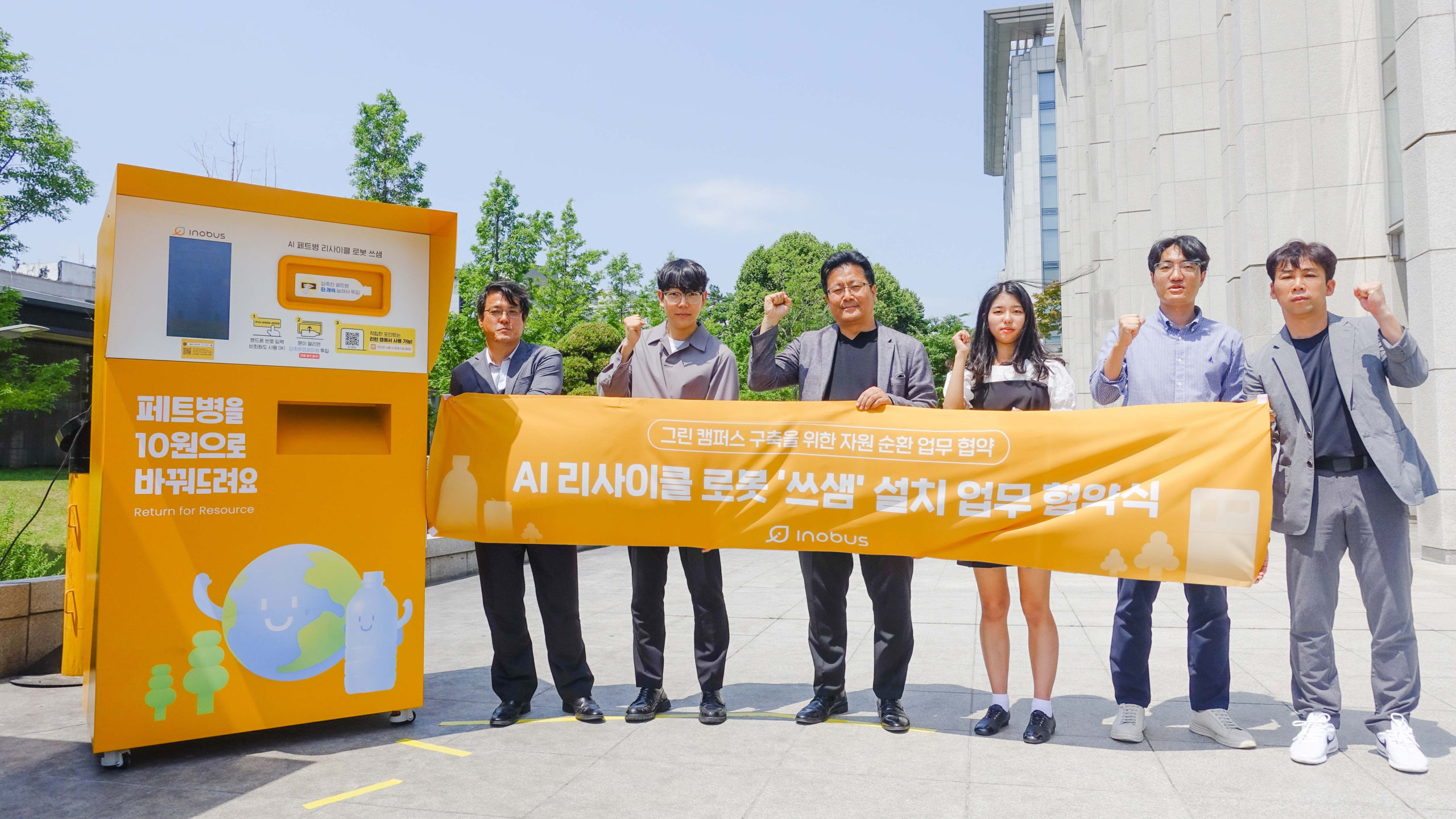 이노버스가 5월 31일 연세대학교와 그린캠퍼스 조성을 위해 AI 페트병 리사이클 로봇 ‘쓰샘 RePET’ 설치 업무협약(MOU)을 체결했다. 이번 협약으로 양 기관은 연세대의 그린캠퍼스 구축을 위해 협력한다.