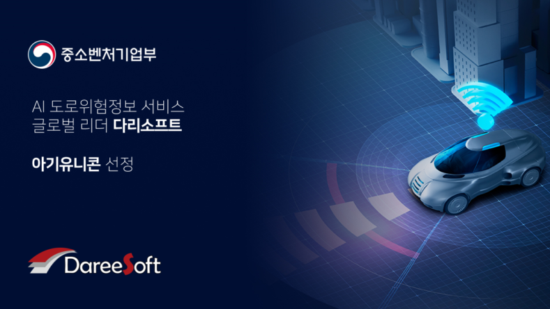 AI 기반 도로 위험정보 서비스 전문 기업 ㈜다리소프트(공동대표 정만식‧노윤선)는 중소벤처기업부가 주관한 ‘아기유니콘 육성사업’에 최종 선정됐다고 1일 밝혔다.