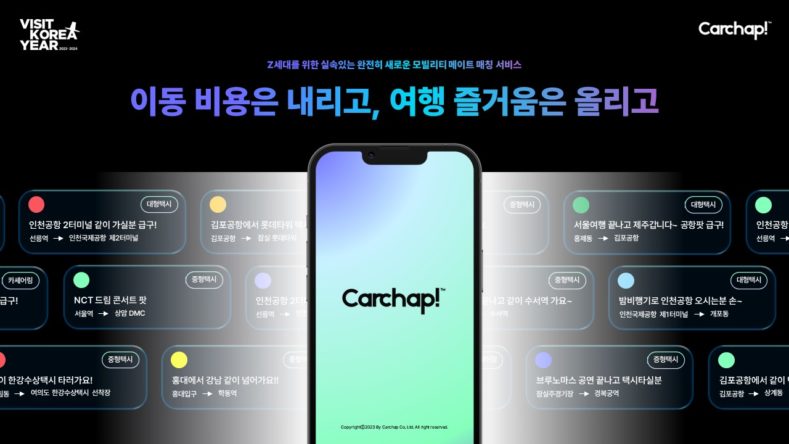 카찹 문시걸 COO는 “서비스명인 Carchap이 Car(모빌리티)+Chap(절친)을 합친 의미인 만큼, 여행 시 여정이 같은 최적의 동승 메이트를 매칭해주고 비용절감과 더불어 도로교통량을 획기적으로 줄일 수 있는 솔루션을 제공하고 나아가 여행 외 일상 생활에서도 사용 할 수 있는 모빌리티 서비스로 발전해 나갈 것“이라고 말했다.