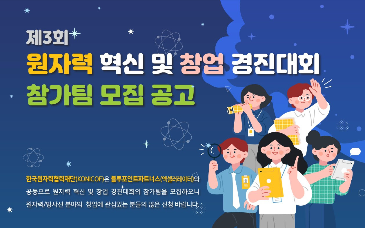 한국원자력협력재단과 액셀러레이터 블루포인트파트너스가 원자력 및 방사선 분야 신규 스타트업 발굴을 위한 ‘제3회 원자력 혁신 및 창업경진대회’를 진행한다.