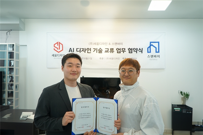 부산 스타트업 스탠바이가 브랜딩 인테리어 전문 회사 세움디자인과 AI디자인 기술 교류 업무 협약을 체결했다고 5일 밝혔다.