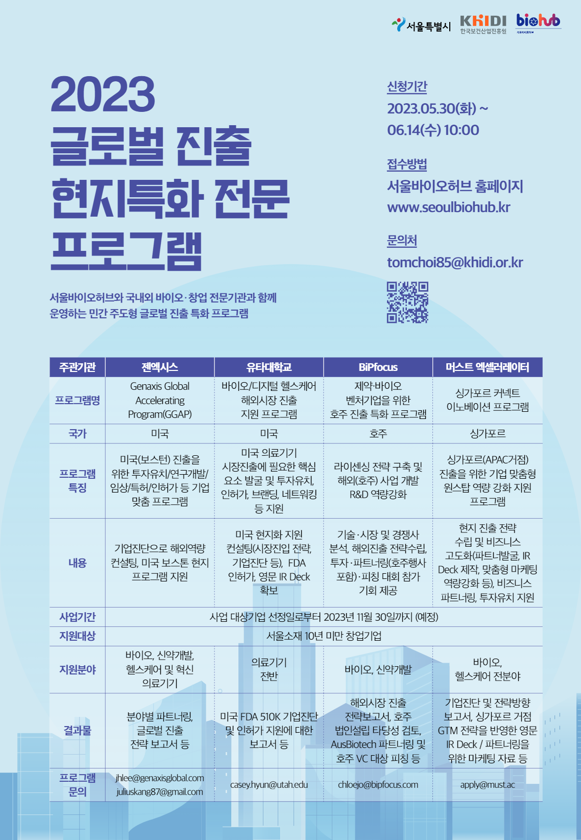 바이오 분야 전문 엑셀러레이터 젠엑시스가 글로벌 시장 진출을 목표하는 국내 바이오·의료기기 스타트업을 위한 ‘글로벌 현지특화 전문 프로그램’의 참가 기업을 모집한다.